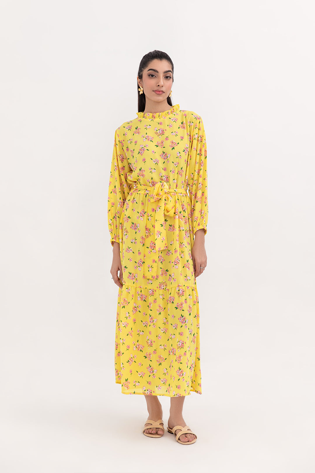 Rs.500.00Introducing Marigold Haze, a beautiful long dress in a soft yellow hue with delicate pink floral motifs. Featuring a ruffled neckline and billowy bishop sleeves, this dress captures the charm of a sunlit garden. Its playful colors make it perfect for sunlit brunches or evening strolls. Light, breezy, and effortlessly romantic, Marigold Haze is your go-to for an extra touch of glow. glow.